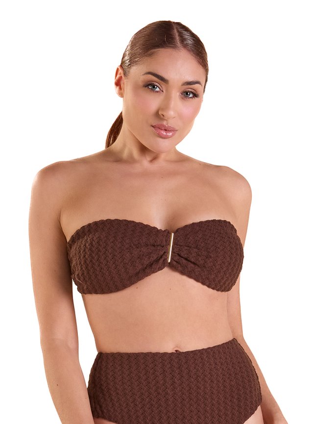 Sofisticado e atemporal, o top tomara que caia em tricot traz um visual elegante e cheio de charme para os dias de sol. Com textura encorpada e toque artesanal, o modelo possui detalhe central franzido com acessório metálico dourado banhado a ouro 24k que valoriza o busto com delicadeza. A estrutura firme do tricot proporciona sustentação leve e caimento impecável. Ideal para quem busca conforto sem abrir mão da elegância à beira-mar ou na piscina. Com gramatura de 250g/m², o tricot é um tecido de malharia sofisticada que une estrutura leve, textura marcante e caimento confortável. Sua construção em pontos aparentes traz um visual artesanal contemporâneo, que valoriza tanto o design minimalista quanto modelagens mais elaboradas. Ideal para peças que pedem toque macio, elasticidade natural e elegância descomplicada. A gramatura intermediária oferece boa cobertura e caimento fluido, mantendo a leveza necessária para os dias mais amenos. Além do conforto térmico, o tecido apresenta toque suave, respirabilidade e excelente comportamento em peças que pedem movimento, tornando-se uma escolha versátil para criações que equilibram moda, conforto e sofisticação natural.