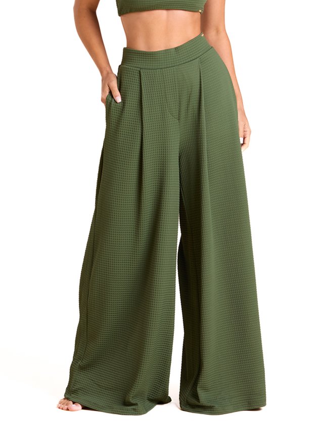 Conforto, elegância e textura em uma única peça. A calça pantalona em tweed é feita com tecido encorpado, trazendo sofisticação ao visual com seu toque texturizado. Possui cós alto e largo, que valoriza a cintura, além de bolsos laterais funcionais que agregam praticidade ao look. A modelagem ampla garante caimento fluido e moderno, ideal para compor produções sofisticadas com blusas ajustadas, croppeds ou camisas soltas. Perfeita para dias em que o estilo e o conforto caminham lado a lado. Com gramatura de 300g/m², o tecido Tweed traz uma releitura contemporânea de um clássico da moda, agora com elasticidade e conforto térmico. Composto por 87% poliamida e 13% elastano, oferece uma base encorpada, com excelente estrutura e toque macio, ideal para peças elegantes e atemporais. Sua textura sofisticada e o efeito visual de “trama nobre” conferem um ar de luxo artesanal. A gramatura elevada proporciona boa sustentação, zero transparência e caimento impecável. Além da estética refinada, o Tweed tecnológico mantém as vantagens funcionais da poliamida: secagem rápida, conforto térmico, tornando-se uma escolha perfeita para quem busca exclusividade, performance e estilo.