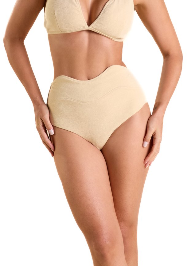 A calcinha cintura alta em tecido bouclê é pura elegância com toque contemporâneo. O recorte em formato coração valoriza a silhueta e garante um visual feminino e sofisticado. Confeccionada em bouclê encorpado, oferece conforto, segurança e um caimento impecável. O destaque fica por conta da placa exclusiva Mardu em metal nobre banhado a ouro 24k aplicada na parte de trás — um detalhe de luxo que faz toda a diferença. Ideal para quem busca estilo, conforto e exclusividade nos dias de sol. O Bouclê Plus é um tecido de visual sofisticado e textura marcante, com gramatura de 320g/m², que entrega estrutura, conforto térmico e acabamento premium. Composto geralmente por fibras como poliamida, elastano e viscose, sua superfície bouclê confere um toque texturizado, elegante e moderno — perfeito para quem busca exclusividade com informação de moda. Sua gramatura elevada proporciona excelente cobertura e sustentação, ideal para peças. Mesmo encorpado, o tecido mantém elasticidade moderada, bom caimento e conforto ao vestir. O Bouclê Plus é uma escolha que une moda e performance: toque macio, secagem rápida, resistência ao uso e visual rico, valorizando modelagens minimalistas e contemporâneas com uma pegada texturizada e autoral.