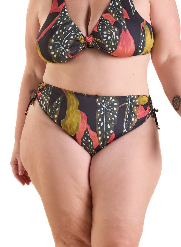 Conforto, estilo e valorização das curvas em uma peça pensada para exaltar a beleza real. Confeccionada em tecido Fluity — leve, fresco e com toque macio — esta calcinha de biquíni plus size possui modelagem de cintura média com amarração lateral ajustável, que permite um caimento perfeito e personalizado. O destaque fica por conta do recorte estratégico no bumbum, que garante o desejado efeito empina bumbum, modelando a silhueta com elegância. A estampa exclusiva Mardu traz identidade e vivacidade, enquanto os acabamentos em metal dourado banhado a ouro 24k nas ponteiras elevam o visual com um toque de luxo. O Fluity é um tecido de alta performance com gramatura de 190g/m², desenvolvido para oferecer leveza extrema, caimento fluido e toque geladinho. Composto por 88% poliamida e 12% elastano, proporciona elasticidade confortável, além de se adaptar perfeitamente ao corpo com sensação de segunda pele. Sua gramatura leve é ideal para modelagens que pedem movimento, frescor e conforto térmico. A superfície levemente acetinada valoriza cores e estampas, trazendo sofisticação ao visual final da peça. Além do toque agradável e da fluidez natural, o Fluity oferece proteção UV50+, secagem rápida e alta respirabilidade, tornando-se uma escolha ideal para peças versáteis, frescas e elegantes — com a qualidade que une tecnologia e bem-estar.