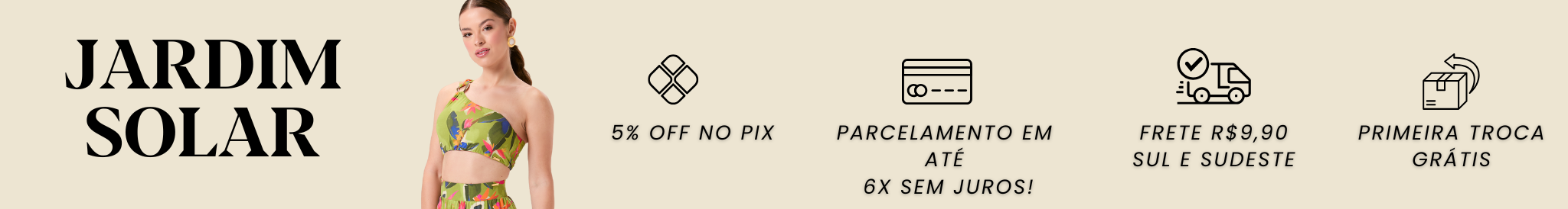 Jardim Solar é um convite a florescer sob a luz do verão. Uma coleção que celebra cores vivas, texturas suaves e o encontro entre o natural e o sofisticado. Inspirada na energia do sol e na delicadeza dos jardins tropicais, cada peça traduz a leveza de dias ensolarados e o encanto de um verão elegante.