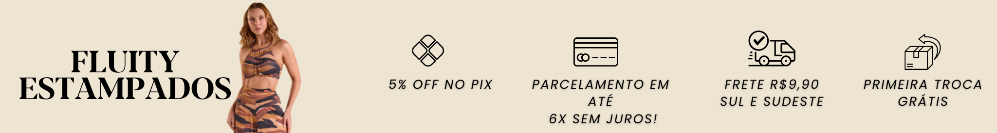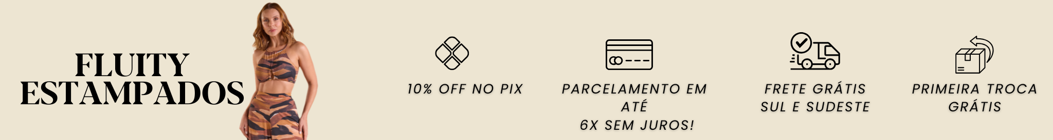 Fluity - Tecido leve e tecnológico com gramatura de 190g/m², é composto por 88% poliamida e 12% elastano. Possui toque geladinho, caimento fluido, superfície levemente acetinada, proteção UV50+ e secagem rápida — combinação perfeita de conforto, frescor e sofisticação.
