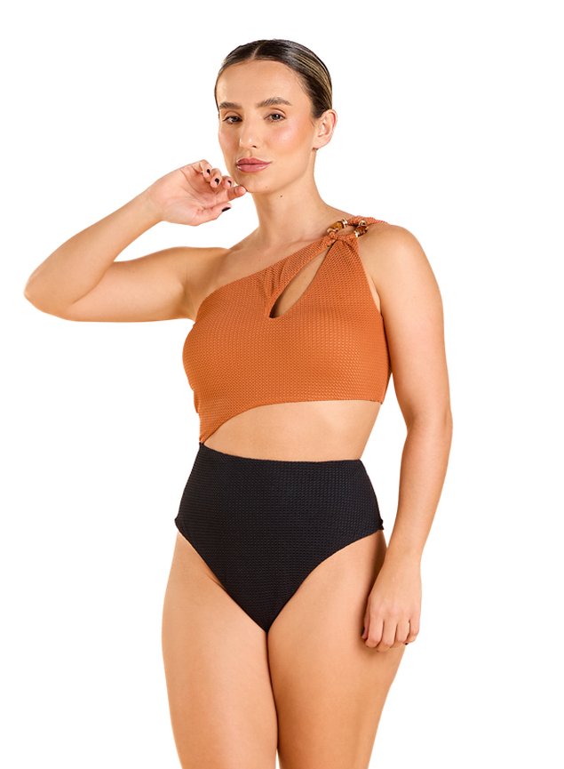 Com design arquitetônico e moderno, este maiô bicolor é confeccionado no exclusivo tecido Carmel — encorpado, com textura elegante e toque extremamente confortável. O modelo apresenta recorte lateral que revela a pele de forma estratégica, valorizando a silhueta com sofisticação. A alça única traz aplicação de argola marmorizada com acabamento banhado a ouro 24k, um detalhe de luxo que reforça a identidade da peça. A combinação de tons contrastantes confere estilo e personalidade, tornando o look ainda mais marcante. Versátil e imponente, é perfeito tanto para o mar quanto para composições sofisticadas de resort ou pool party. Seu toque macio e textura leve proporcionam máximo conforto, enquanto a elasticidade garante ajuste perfeito ao corpo com liberdade de movimento. Com gramatura de 220g/m², o tecido Cannes combina tecnologia, conforto e sofisticação. Sua base em 94,2% poliamida e 5,8% elastano garante elasticidade equilibrada, toque extremamente macio e excelente ajuste ao corpo, favorecendo modelagens que pedem estrutura e caimento impecável. Essa gramatura média proporciona bom nível de cobertura, sem transparência, além de permitir respirabilidade e secagem rápida. Seu visual levemente acetinado valoriza as cores e estampas aplicadas, enquanto o toque geladinho proporciona conforto térmico mesmo nos dias mais quentes. Uma base versátil e tecnológica que traduz elegância com performance.