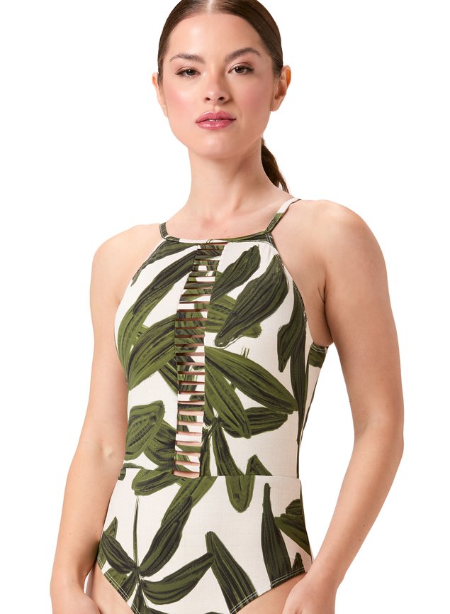 Sofisticação e personalidade traduzidas em um design marcante. Este maiô frente única possui decote alto com tiras vazadas centrais, criando um visual moderno e elegante que alonga a silhueta. A parte de trás conta com um recorte em gota que valoriza as costas e garante charme extra à peça. As alças finas formam um desenho delicado e confortável, com fechamento no pescoço. Confeccionado em tecido de toque suave, secagem rápida e proteção UV50+, é ideal para quem busca um visual elegante com informação de moda na praia ou piscina. O Fluity é um tecido de alta performance com gramatura de 190g/m², desenvolvido para oferecer leveza extrema, caimento fluido e toque geladinho. Composto por 88% poliamida e 12% elastano, proporciona elasticidade confortável, além de se adaptar perfeitamente ao corpo com sensação de segunda pele. Sua gramatura leve é ideal para modelagens que pedem movimento, frescor e conforto térmico. A superfície levemente acetinada valoriza cores e estampas, trazendo sofisticação ao visual final da peça. Além do toque agradável e da fluidez natural, o Fluity oferece proteção UV50+, secagem rápida e alta respirabilidade, tornando-se uma escolha ideal para peças versáteis, frescas e elegantes — com a qualidade que une tecnologia e bem-estar.Slide3ILUSTRE NATURAL: (REF: M172) A estampa traduz a força do simples e o luxo da natureza em sua forma mais refinada. Essa estampa da coleção Essências & Raízes da Mardu traz uma beleza serena e atemporal, com um toque sofisticado que valoriza o essencial. Sobre o fundo preto profundo, ramos de folhas em tom areia claro se destacam com suavidade, criando um contraste elegante e minimalista. As formas orgânicas e delicadamente desenhadas evocam a simplicidade da natureza preservada — como se fossem traços feitos à mão, que contam histórias de ancestralidade, calma e conexão. Essa padronagem carrega a essência da leveza e da elegância natural, representando raízes firmes, mas com movimento e fluidez. A escolha do tom neutro sobre o escuro reforça a ideia de equilíbrio entre o clássico e o contemporâneo, ideal para compor looks versáteis e sofisticados que atravessam o verão com poesia.
