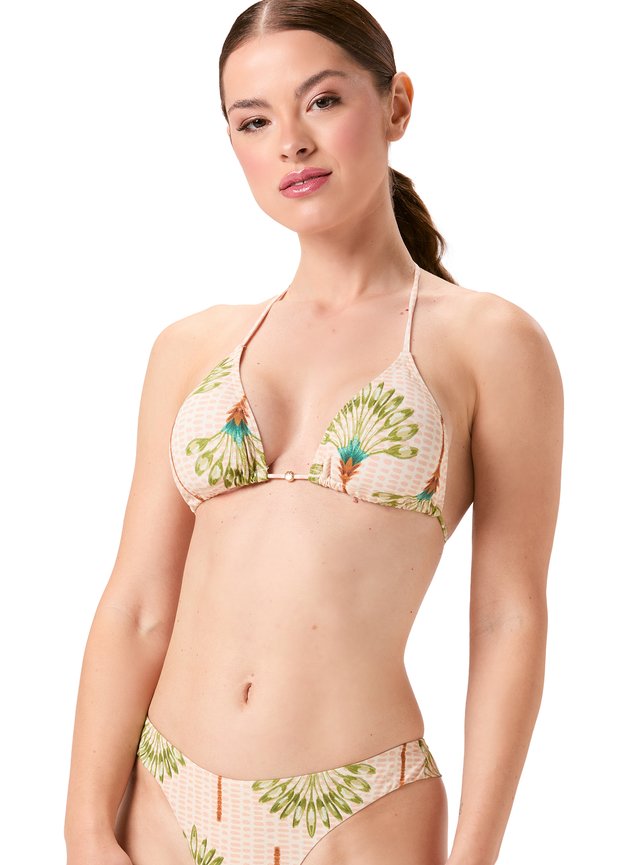 PALMS: (REF: M174) Transmite a essência de uma mulher que cultiva suas raízes e floresce com elegância. Essa estampa traduz de forma lúdica e sofisticada o espírito tropical da coleção Essência & Raízes da Mardu. Com padronagem ritmada e harmônica, ela apresenta palmeiras estilizadas desenhadas em aquarela, com folhas em tons vibrantes de verde oliva e turquesa, e caules em um terroso avermelhado que remete à natureza crua e às texturas da terra. O fundo bege com pequenos elementos geométricos orgânicos remete ao trançado de fibras naturais, como a palha e o linho artesanal, reforçando o elo entre design e ancestralidade. A composição é simétrica e leve, equilibrando o encanto tropical com uma estética artística e contemporânea.