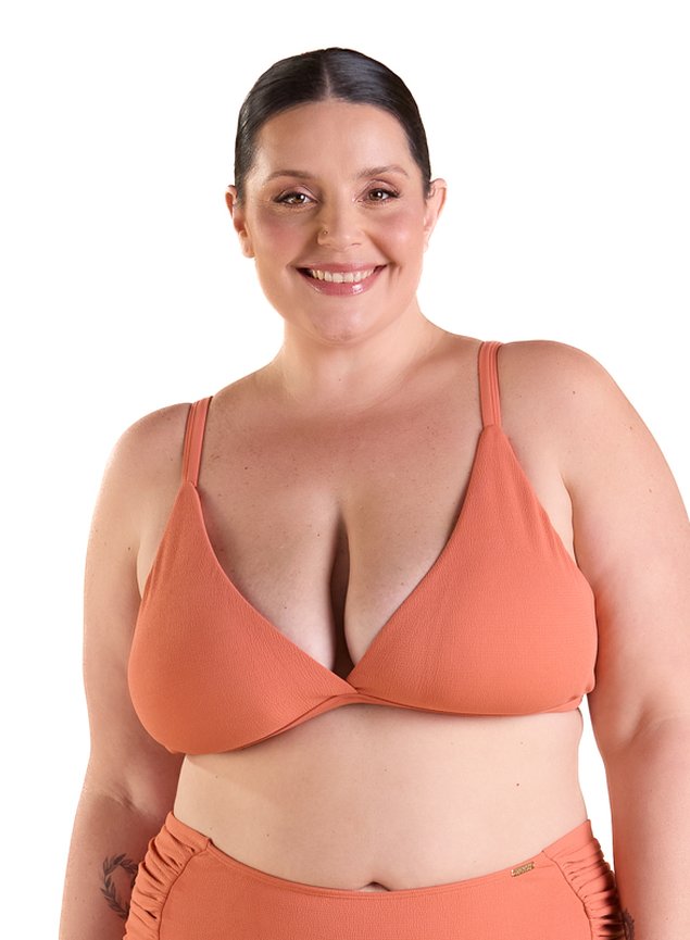 CANNES P20368 plusCom um design leve e atemporal, o top de biquíni confeccionado no tecido Cannes se destaca pela textura sutil e toque macio, que proporcionam conforto e sofisticação. A modelagem triangulo é estruturada com bojo removível e alças finas reguláveis, garantindo sustentação na medida certa e ajuste perfeito ao corpo. A peça valoriza o colo com elegância e é ideal para quem busca um visual moderno, versátil e cheio de charme para dias de sol. Seu toque macio e textura leve proporcionam máximo conforto, enquanto a elasticidade garante ajuste perfeito ao corpo com liberdade de movimento. Com gramatura de 220g/m², o tecido Cannes combina tecnologia, conforto e sofisticação. Sua base em 94,2% poliamida e 5,8% elastano garante elasticidade equilibrada, toque extremamente macio e excelente ajuste ao corpo, favorecendo modelagens que pedem estrutura e caimento impecável. Essa gramatura média proporciona bom nível de cobertura, sem transparência, além de permitir respirabilidade e secagem rápida. Seu visual levemente acetinado valoriza as cores e estampas aplicadas, enquanto o toque geladinho proporciona conforto térmico mesmo nos dias mais quentes. Uma base versátil e tecnológica que traduz elegância com performance.