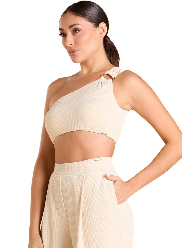 Com design moderno e toque sofisticado, o top ombro só é a escolha perfeita para quem busca estilo e elegância em uma única peça. Confeccionado em tecido tweed com textura encorpada e confortável, ele se destaca pelo detalhe em aviamento metálico banhado a ouro 24K na alça, que confere um acabamento refinado e exclusivo. A modelagem assimétrica valoriza o colo e garante sustentação com charme. Ideal para composições contemporâneas, tanto na praia quanto em produções mais urbanas.Com gramatura de 300g/m², o tecido Tweed traz uma releitura contemporânea de um clássico da moda, agora com elasticidade e conforto térmico. Composto por 87% poliamida e 13% elastano, oferece uma base encorpada, com excelente estrutura e toque macio, ideal para peças elegantes e atemporais. Sua textura sofisticada e o efeito visual de “trama nobre” conferem um ar de luxo artesanal. A gramatura elevada proporciona boa sustentação, zero transparência e caimento impecável. Além da estética refinada, o Tweed tecnológico mantém as vantagens funcionais da poliamida: secagem rápida, conforto térmico, tornando-se uma escolha perfeita para quem busca exclusividade, performance e estilo.