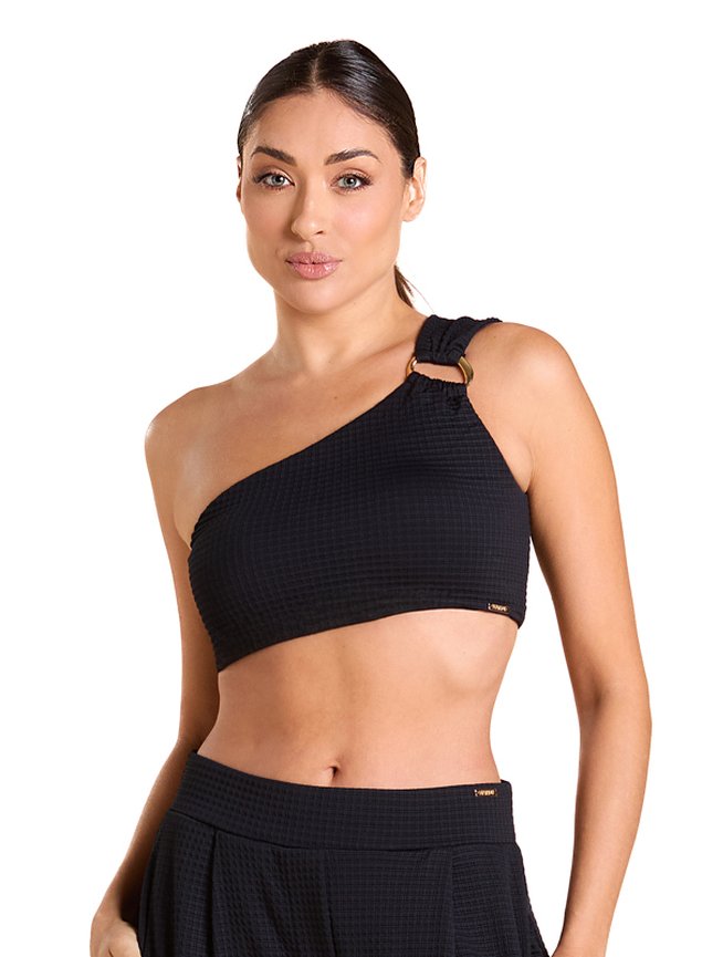 Com design moderno e toque sofisticado, o top ombro só é a escolha perfeita para quem busca estilo e elegância em uma única peça. Confeccionado em tecido tweed com textura encorpada e confortável, ele se destaca pelo detalhe em aviamento metálico banhado a ouro 24K na alça, que confere um acabamento refinado e exclusivo. A modelagem assimétrica valoriza o colo e garante sustentação com charme. Ideal para composições contemporâneas, tanto na praia quanto em produções mais urbanas.Com gramatura de 300g/m², o tecido Tweed traz uma releitura contemporânea de um clássico da moda, agora com elasticidade e conforto térmico. Composto por 87% poliamida e 13% elastano, oferece uma base encorpada, com excelente estrutura e toque macio, ideal para peças elegantes e atemporais. Sua textura sofisticada e o efeito visual de “trama nobre” conferem um ar de luxo artesanal. A gramatura elevada proporciona boa sustentação, zero transparência e caimento impecável. Além da estética refinada, o Tweed tecnológico mantém as vantagens funcionais da poliamida: secagem rápida, conforto térmico, tornando-se uma escolha perfeita para quem busca exclusividade, performance e estilo.