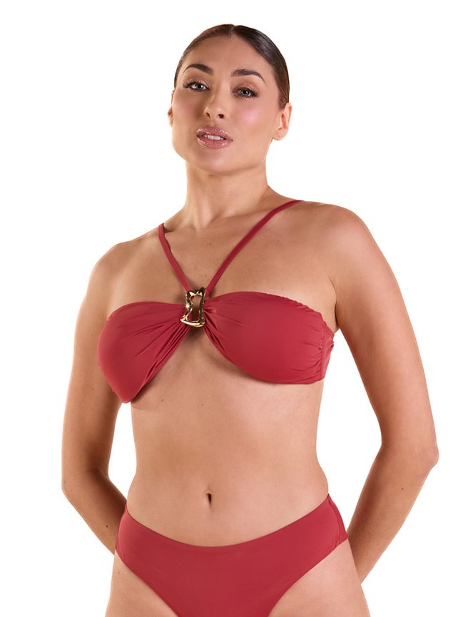 Charme e elegância em uma peça que valoriza o colo com leveza. Este top estilo tomara que caia possui bojo fixo e estrutura firme que garante segurança e conforto. O destaque fica por conta do aviamento frontal banhado a ouro 24K, que conecta delicadamente o busto e adiciona um toque sofisticado ao look. As alças finas são ajustáveis e podem ser usadas de diferentes formas — no pescoço ou retas — trazendo versatilidade ao visual. Com fecho em metal nas costas e tecido de toque suave, é ideal para curtir o sol com estilo e glamour.