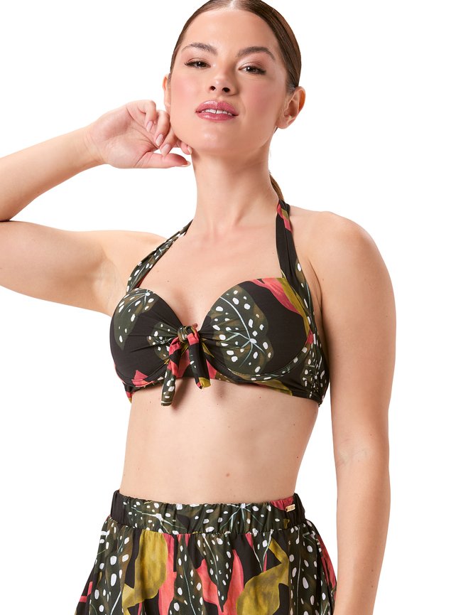 O biquíni meia-taça com aro é um dos modelos mais desejados do verão, perfeito para quem busca elegância com sustentação. Com estrutura reforçada, ele conta com faixa sobreposta e um delicado detalhe em nó no centro, que adiciona um toque romântico à peça. Seu grande diferencial está na modelagem com aro e proteção lateral interna, que proporcionam ainda mais segurança e conforto ao busto. As alças largas, com amarração no pescoço e nas costas, garantem ajuste perfeito e firmeza ideal para curtir os dias de sol com estilo. O Fluity é um tecido de alta performance com gramatura de 190g/m², desenvolvido para oferecer leveza extrema, caimento fluido e toque geladinho. Composto por 88% poliamida e 12% elastano, proporciona elasticidade confortável e se adapta perfeitamente ao corpo com sensação de segunda pele. Sua gramatura leve é ideal para modelagens que pedem movimento, frescor e conforto térmico, enquanto a superfície levemente acetinada valoriza cores e estampas, trazendo sofisticação ao visual final da peça. Além do toque agradável e da fluidez natural, o Fluity oferece proteção UV50+, secagem rápida e alta respirabilidade, tornando-se uma escolha ideal para peças versáteis, frescas e elegantes — com a qualidade que une tecnologia e bem-estar.