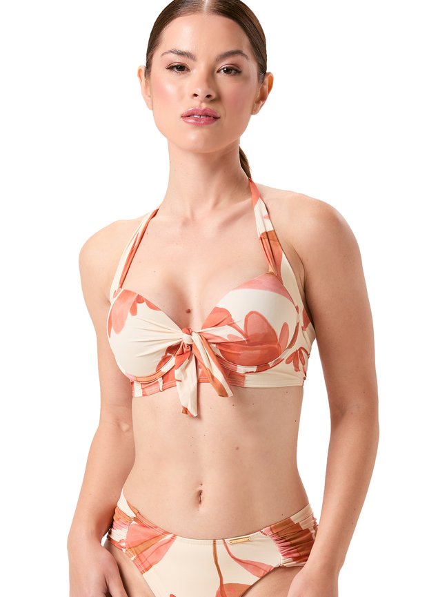 O biquíni meia-taça com aro é um dos modelos mais desejados do verão, perfeito para quem busca elegância com sustentação. Com estrutura reforçada, ele conta com faixa sobreposta e um delicado detalhe em nó no centro, que adiciona um toque romântico à peça. Seu grande diferencial está na modelagem com aro e proteção lateral interna, que proporcionam ainda mais segurança e conforto ao busto. As alças largas, com amarração no pescoço e nas costas, garantem ajuste perfeito e firmeza ideal para curtir os dias de sol com estilo. O Fluity é um tecido de alta performance com gramatura de 190g/m², desenvolvido para oferecer leveza extrema, caimento fluido e toque geladinho. Composto por 88% poliamida e 12% elastano, proporciona elasticidade confortável e se adapta perfeitamente ao corpo com sensação de segunda pele. Sua gramatura leve é ideal para modelagens que pedem movimento, frescor e conforto térmico, enquanto a superfície levemente acetinada valoriza cores e estampas, trazendo sofisticação ao visual final da peça. Além do toque agradável e da fluidez natural, o Fluity oferece proteção UV50+, secagem rápida e alta respirabilidade, tornando-se uma escolha ideal para peças versáteis, frescas e elegantes — com a qualidade que une tecnologia e bem-estar.
